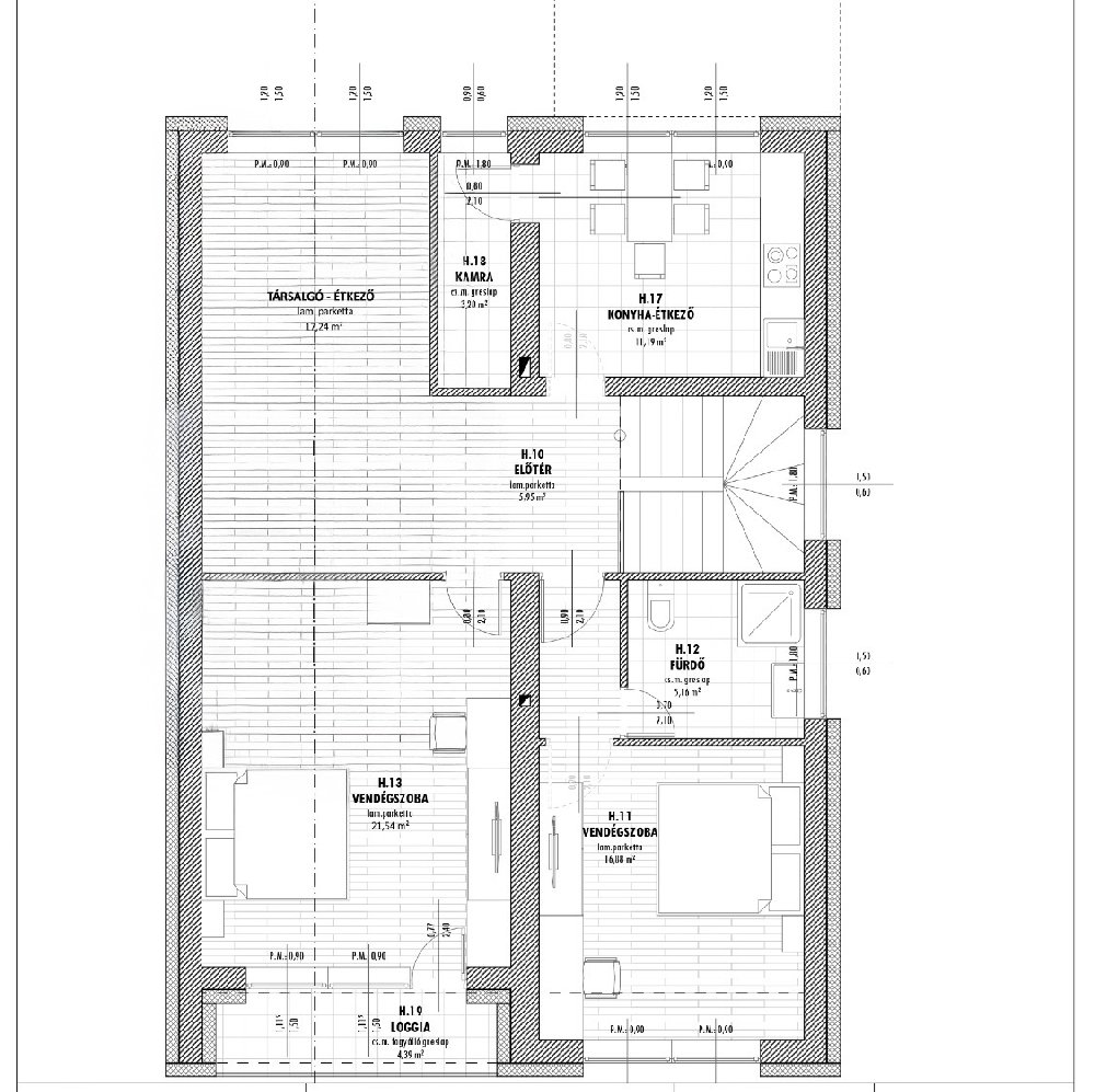 - 4 szoba + 1 nagy nappali + 1 étkező + 3 fürdő (2 alsó szobának külön-külön fürdője van) gardrób szoba